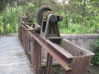 Lávka nad jezem, detail ovládání stavidel, květen 2016, © Dušan Žatecký, (Prvky na obrázku: jez)