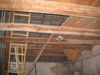 Podstřeší jižního dílu severní části dnešní budovy - vlevo zeď oddělující severní a střední část dnešní budovy, květen 2016, © Dušan Žatecký