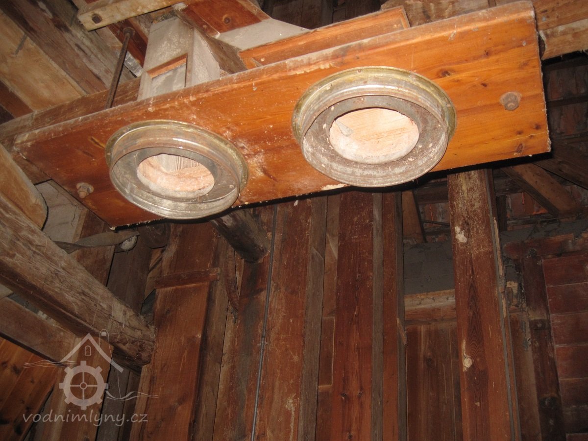 Patro jižního dílu severní části dnešní budovy, květen 2016, © Dušan Žatecký, (Prvky na obrázku: transmise, řemenice, převody)