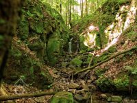 V závěru svého toku udělal velký skok ze skály, který jsme nazvali Vaňovský vodopád. Představte si, že v horní části této stružky stával mlýn na obilí. Jeho trosky se nacházejí doprava mimo cestu. Rozvaliny byly později zvány Čertův mlýn a lidé se tomuto místu raději vyhnuli.