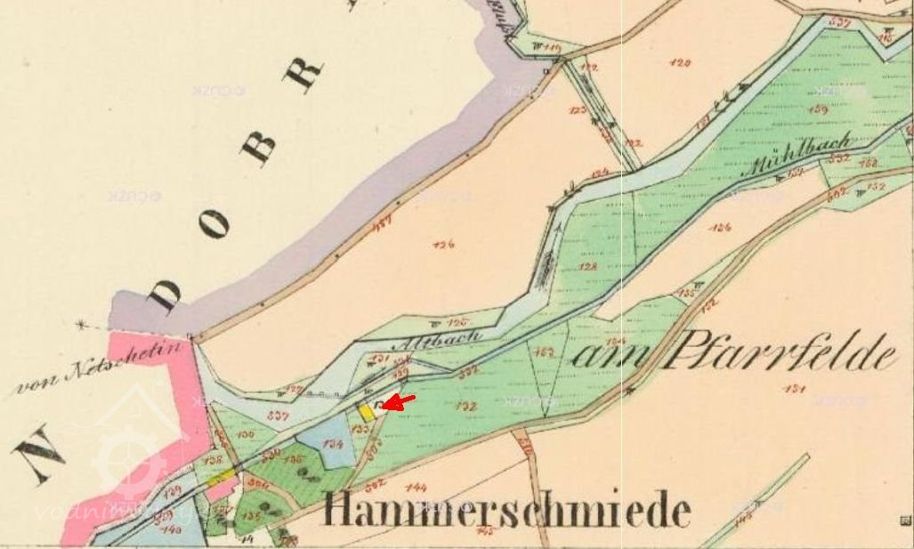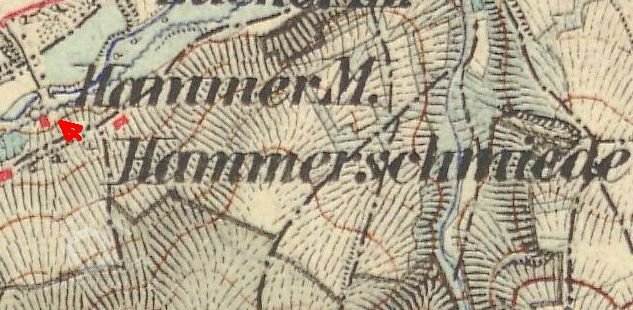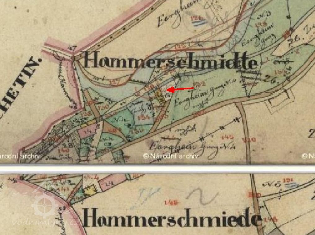 1839 - objekt rozdělen na Hammerschniede a Hammerschmidte, č. N 4 (Indikační skica, Císařské poviné otisky), současný mlýn č. 3