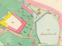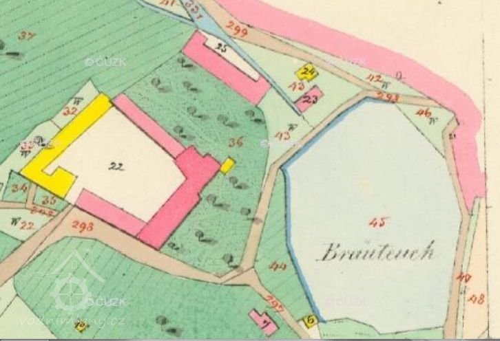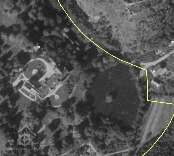 Objekt pivovaru a mlýna byl v roce 1952 zarostlý stromy, viz ortomapa