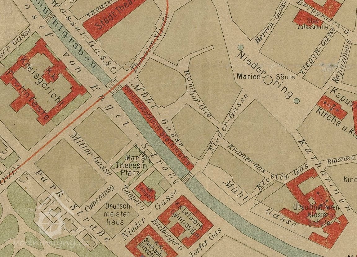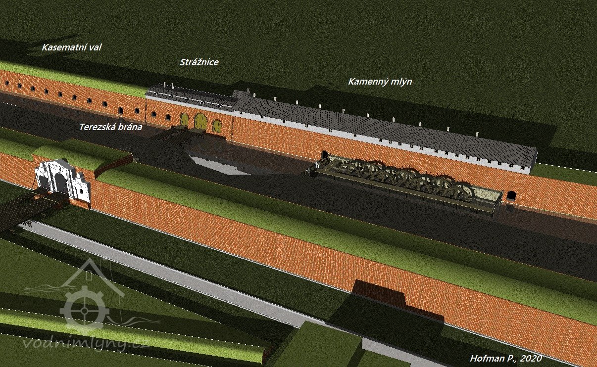 kamenný mlýn byl kdysi postaven na místě dnešní Terezské brány. Až v době stavby Bastionky byl "přesunut" na kasematní val. To se dočtete v každé literatuře. To není ale tak jednoduché. Mlýn byl zbořen a jeho zázemí bylo přesunuto. Při stavbě na začátku druhé poloviny 18. století ale rozhodně o kamenný mlén se nejednalo. byl to obyčejný kasematní val a nad ním se trčela stejná dřevěná půlmansardová střecha, jako u strážnice. Prusové však v roce 1758, když dobývali čerstvě dostavenou bastionku, tak jej zapálili granátem a mlén vyhořel. Ona to schytala i Terezská, koule se dostaly i do radnice a na sloup na náměstí.