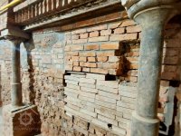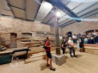 Ve střední části se dochovalo částečně původní dřevěné mlecí zařízení (násypky).