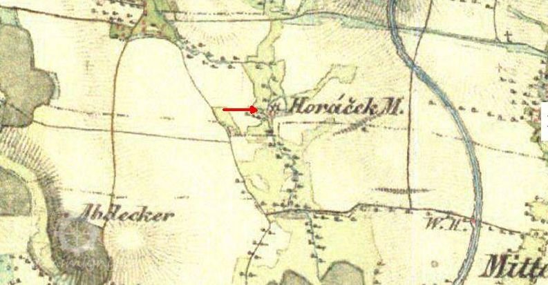 Asi 200 m pod obcí Lány v místě pod původním brodem, kde se Heřmanka prudce stáčí doprava, byla rozlohou nevelká vodní plocha rybníka a pod ním stál mlýn zvaný Horáček. Odkdy zde stál, není záznamů, ale mohlo to být ke konci 17. století. Na mapě I. vojenského mapování v r. 1764 jsou vyznačeny dva rybníky. Na mapě II. vojenského mapování 1836-52 jsou již zakresleny oba mlýny na Heřmance, Horáčkův i níže položený Podhrázský.