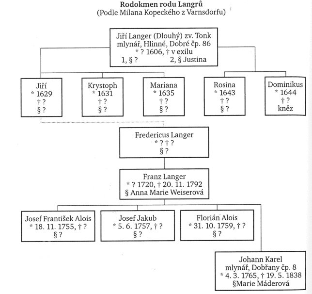 1783 sem přichází čerstvě vyučený krajánek Karel Langr z Moravské Špiglice, Goldsteinské panství, Olomoucký kraj, který se zde usadil a oženil se s dcerou Jiřího Mádra Marií.