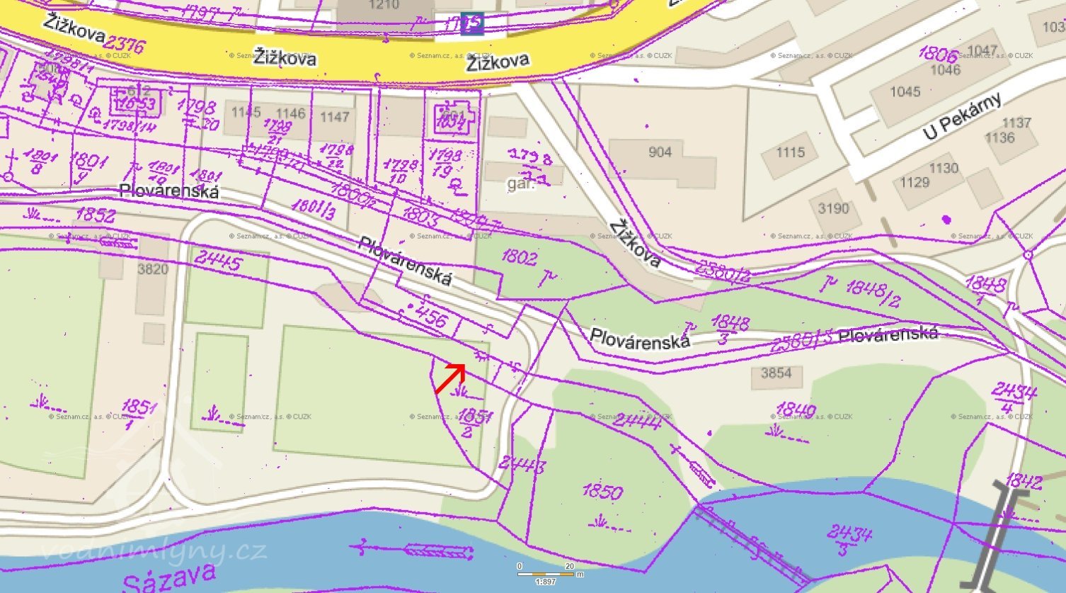 V roce 2007 byl otevřen nový Sportovní areál v Plovárenské ulici. Ve mně neznámé době předtím byl náhon zasypán, mlýn zbourán a celé místo prošlo terénními úpravami, včetně částečné změny parcelních čísel. Porovnáním čísel pozemků a staveb v okolí na indikační skice a současném katastrálním zobrazení jsem určila místo bývalého mlýna v severovýchodní části hřiště v uvedeném Sportovním areálu.