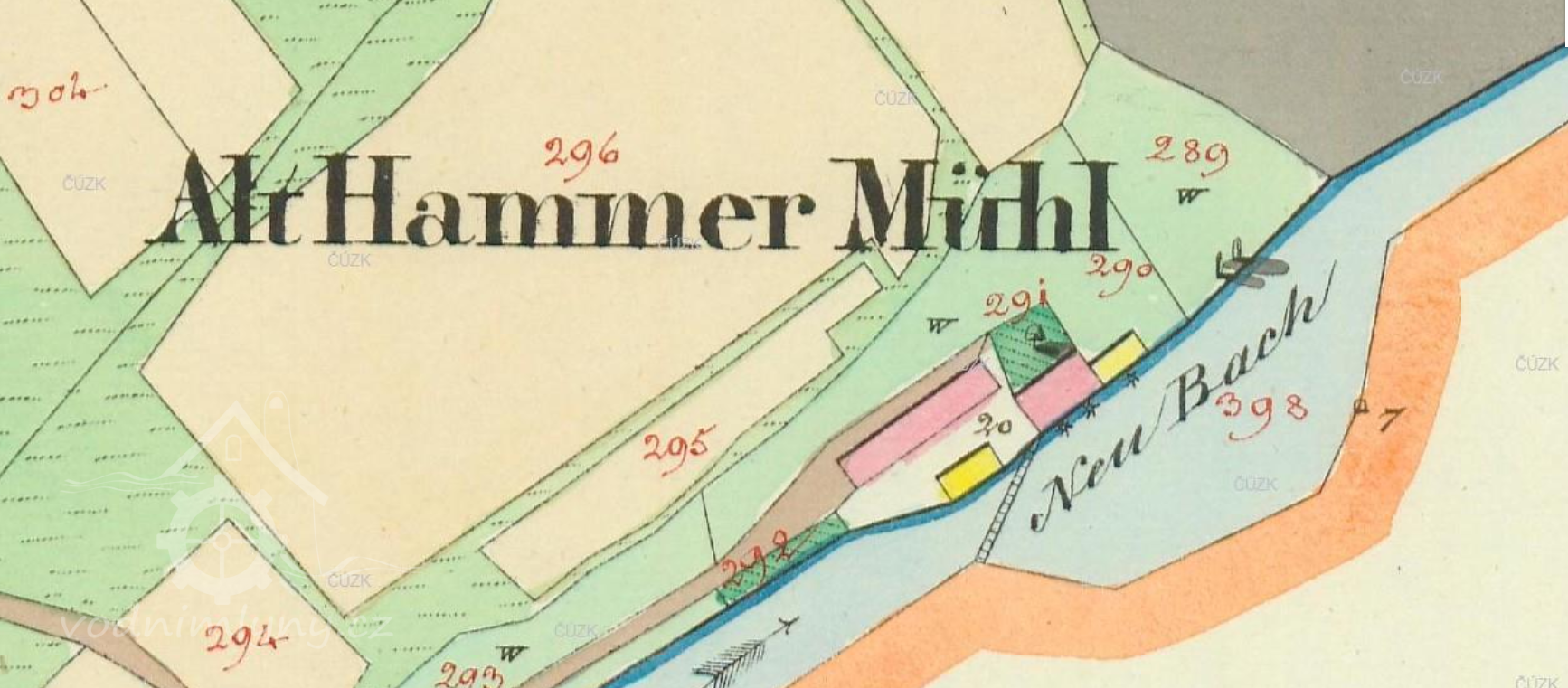 Weinzettlův, Hamerský, Starohamerský, Mlácký mlýn; Alt Hammer Mühl