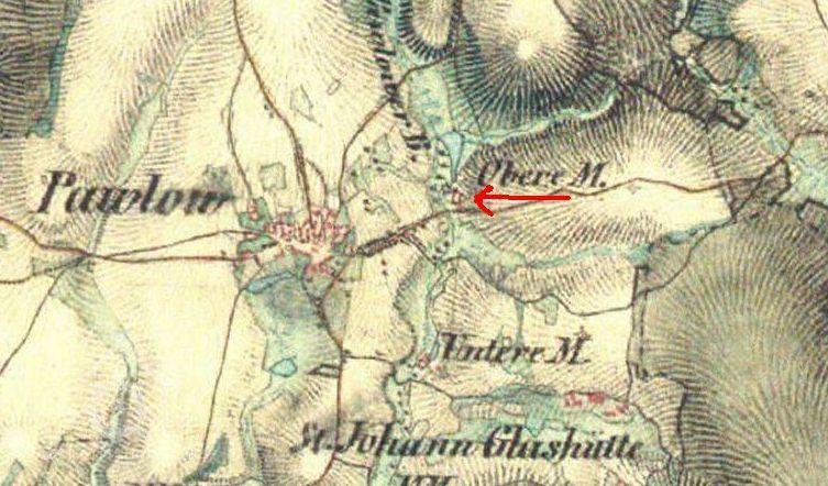 Na mapě II. vojenského mapování v letech 1836-52 je označen jako Obere Mühle.