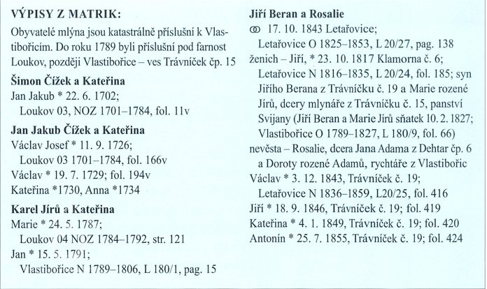 citováno z publikace: Jan Klempera, Vodní mlýny v Čechách VII, str. 110