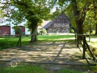 Zajímavou stavbou při mlýně je stodola, neboť její štít je vyzdoben růžicemi z cihel a cihlami vyzděné stěny pod klenbou mají otvory, aby dovnitř proudil vzduch a bylo zabezpečeno větrání uloženého nevymláceného obilí. Štít stodoly byl opraven v přesném původním provedení v roce 1942. (EN)
