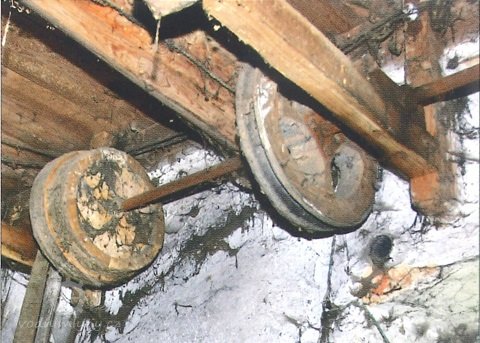 Rovněž dochována tzv. královská hřídel, procházející všemi patry až do podstřeší, kapsové výtahy a dřevěné roury pro pohyb meliva samospádem..