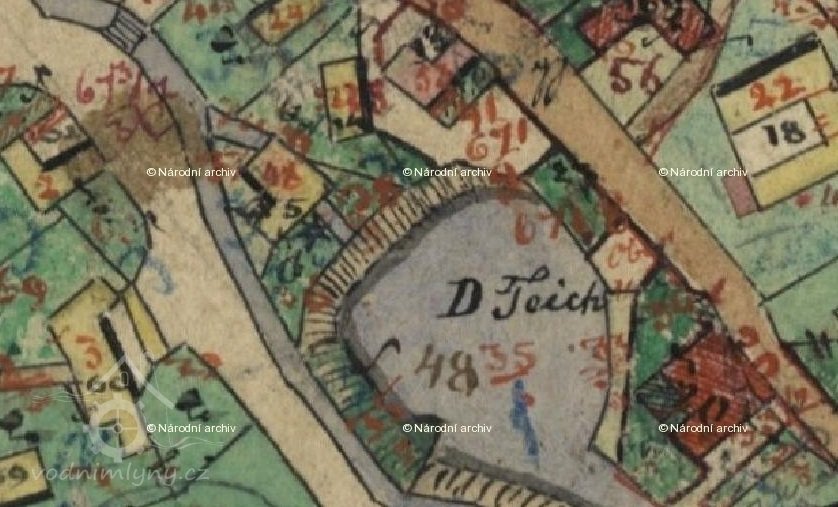 Mlýn u podměstského rybníka na potoce Olšinka. Na tomto místě byla též pila s jedním dřevěným katrem a také olejna. Olej se v ní vyráběl ze lněného semene v době, kdy se v našem kraji ještě pěstoval len na výrobu plátna.