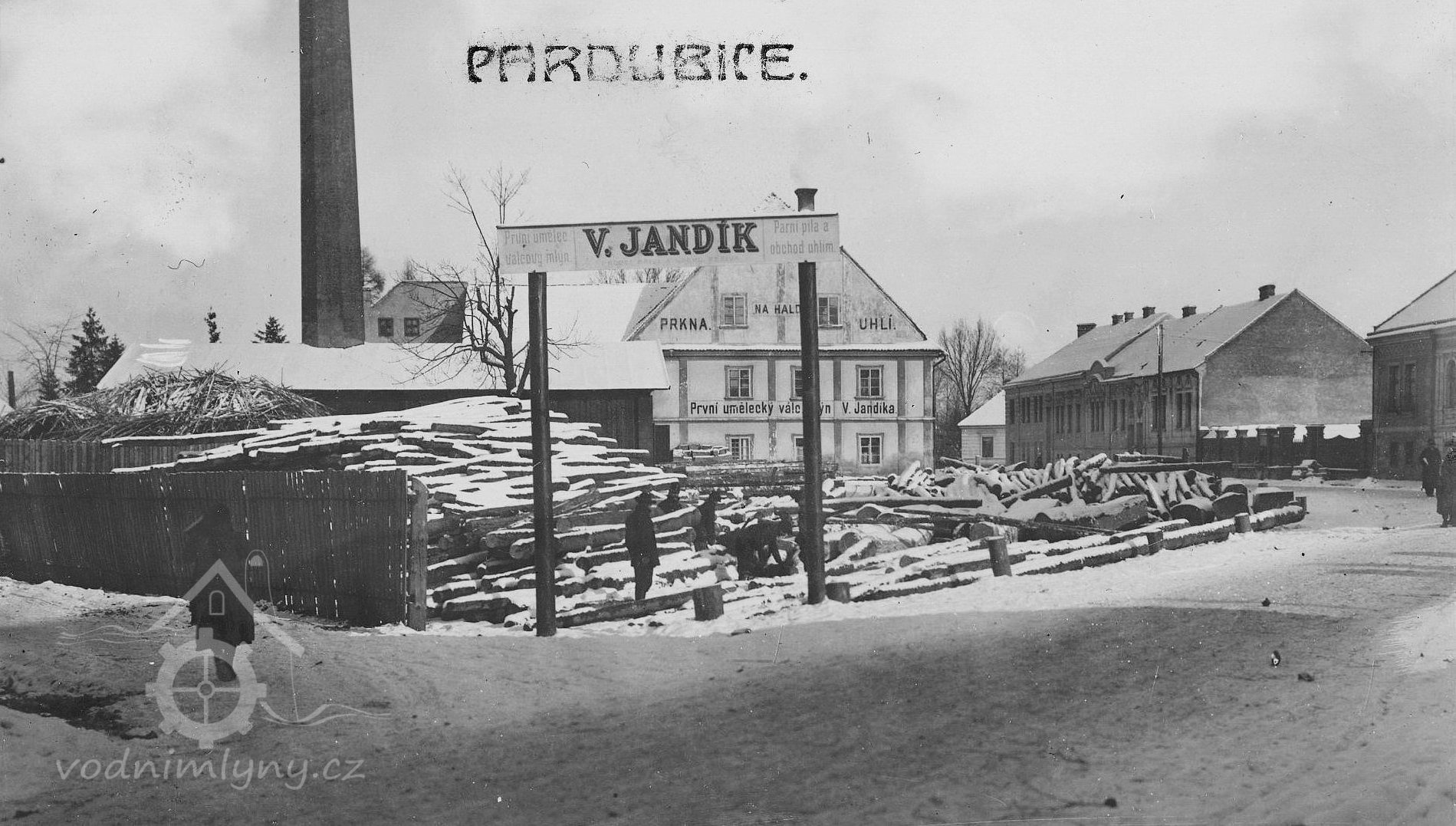 Mlýn postavil "proti prachovni panské nad bělidly" 1542 pekař Jan poté když Vilém z Pernštejna zřídil kanál Halda.