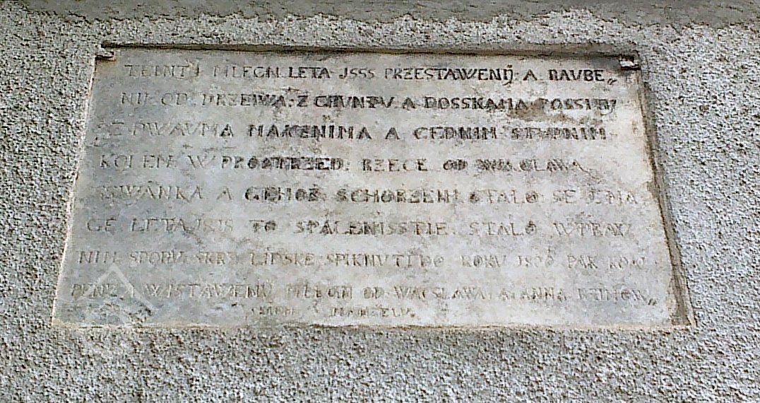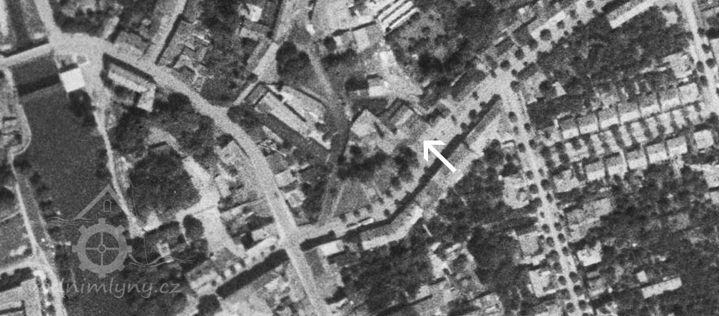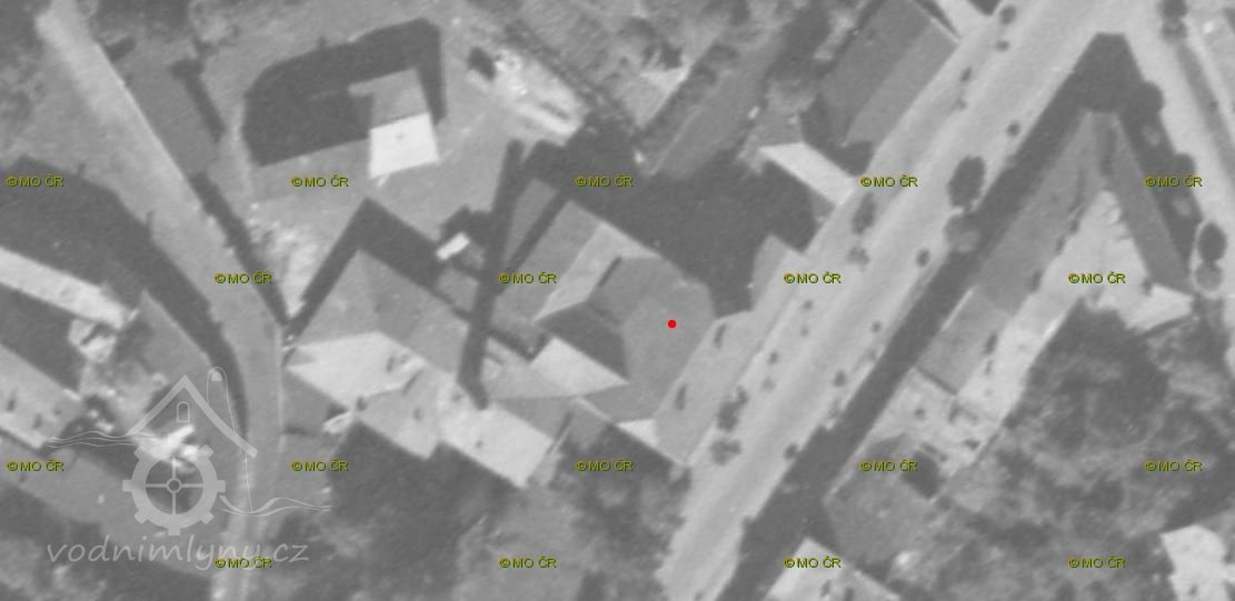 (Tento mlejn léta 1555 přestavěný a roubený od dřeva z gruntu a doškama pošitý s dvouma moučnýma a jedním stupním kolem v prostřed řece od Václava Švanka a jehož shoření stalo se 1. máje léta 1818. To spáleniště stálo pak v právním sporu skrz lidské spiknutí do roku 1820, pak koupený a vystavěný mlejn od Václava a Anny Říhovských, manželů.)