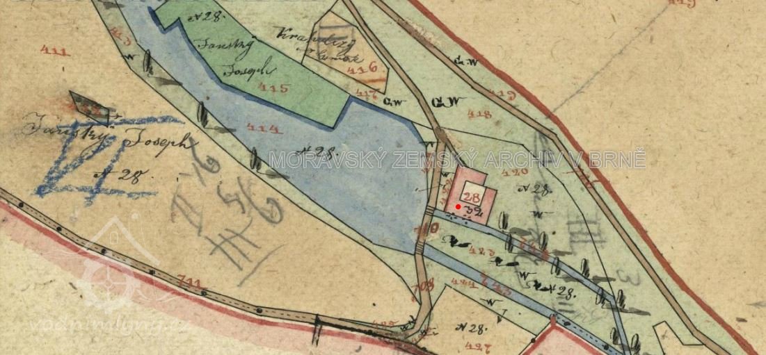 Jeden z několika mlýnů na toku říčky Myslůvky v Krahulčí a blízkém okolí.