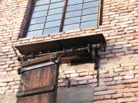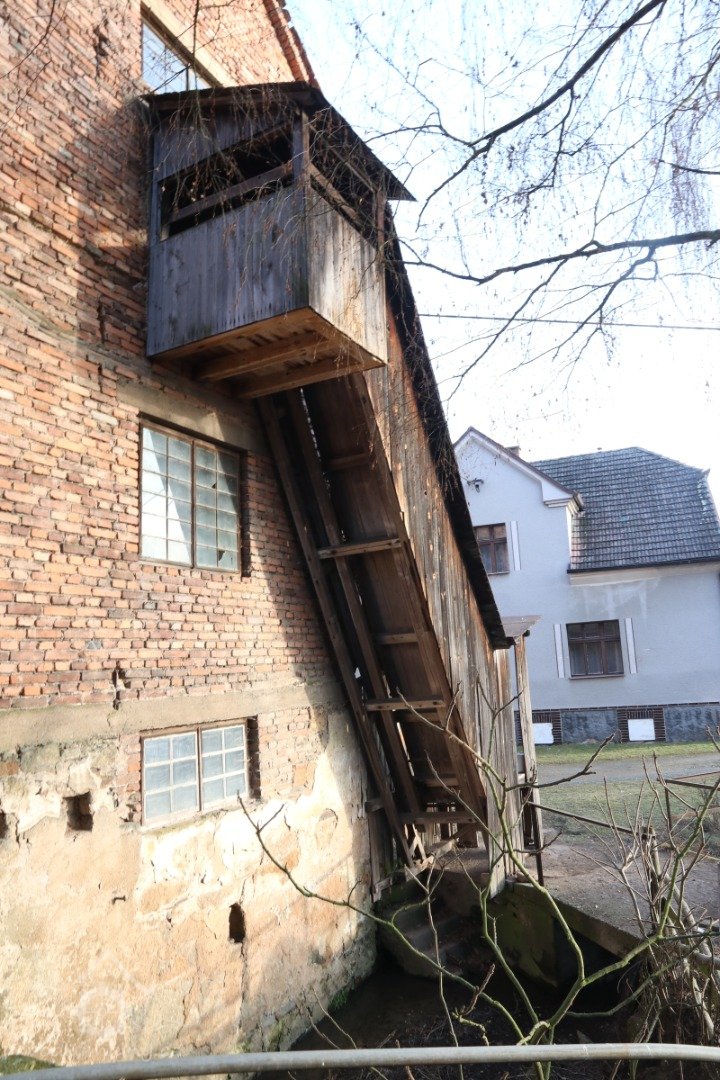 Okna, dveře, vyskladňovací otvor na mlýnici, 2017, © Helena Špůrová, (Prvky na obrázku: dveře, okno, vyskladňovací otvor)