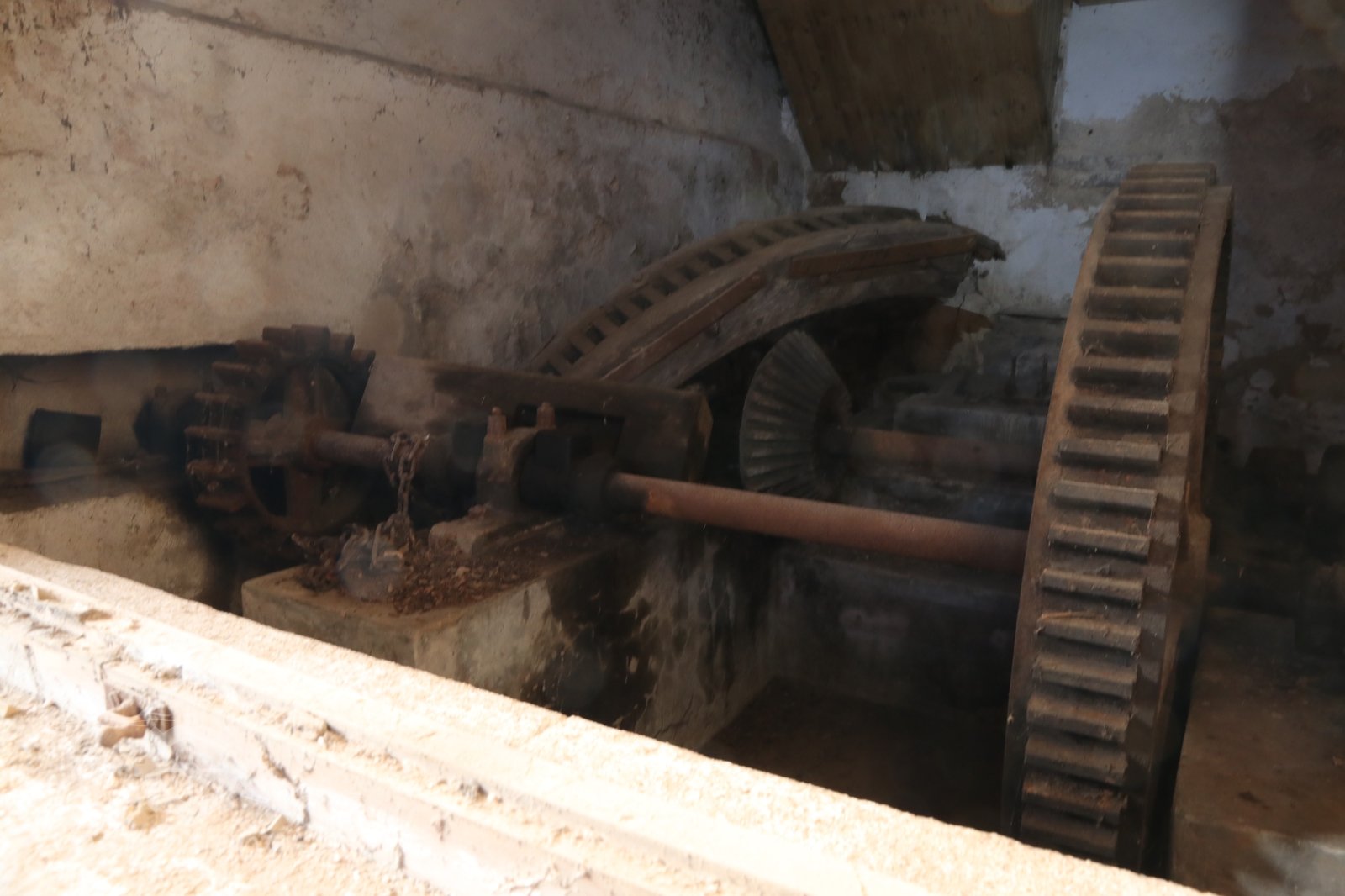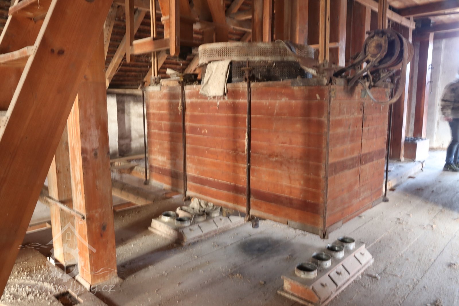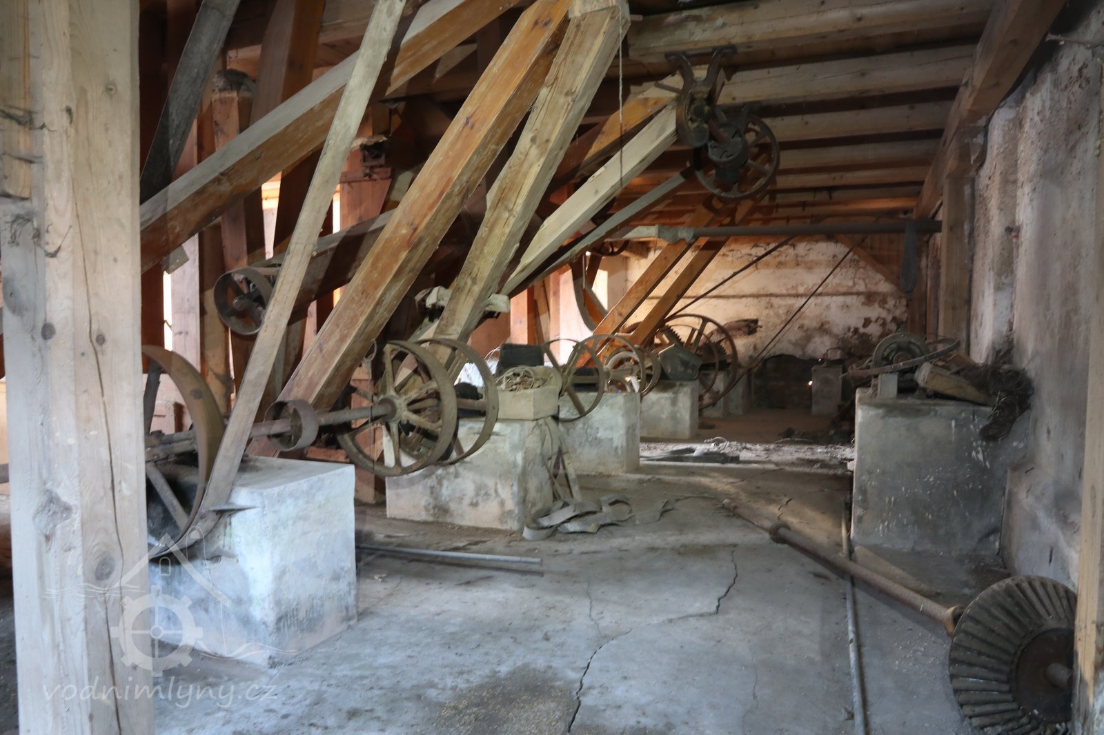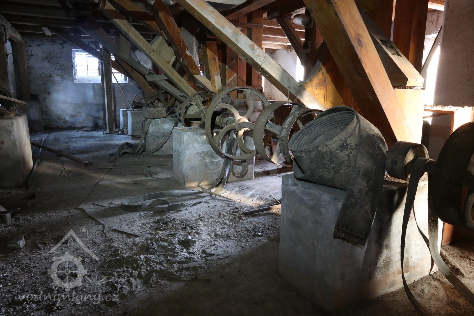 Hlavní transmise, leden 2020, © Šimek, (Prvky na obrázku: transmise, řemenice, převody, transmise, řemenice, převody - transmisní hřídele s řemenicemi (výrobek průmyslový i řemeslný))