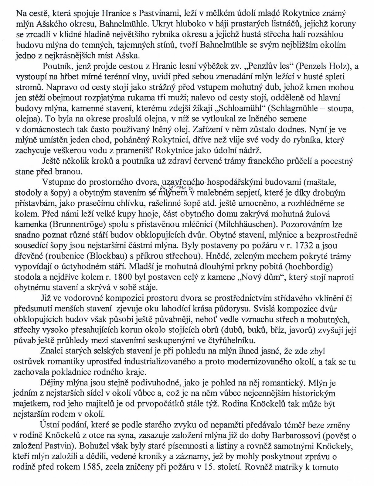 Ponkratius Knöckel předává a prodáva r.1662 mlýn synovi Nikol Knöckel za 250 fl císařských. Neni to moc pro celý mlýn s pozemkami, ale v období války kdy bylo málo peněz v oběhu.
