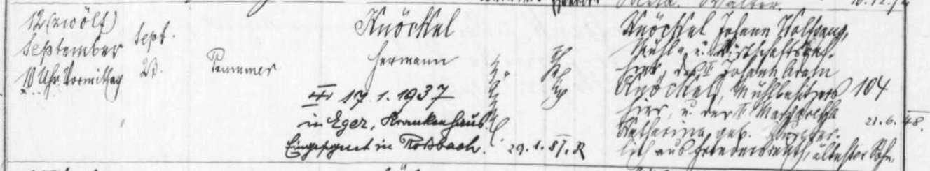 11.7.1698 ve stáří 71 letech nechal Nikol Knöckel napsat od hranického soudce a svědky svůj testament. Dědič je jeho syn Kaspar Knöckel.