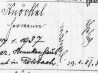 Johannes Knöckel platí 31.5.1740 za 3 bratry, kteří se usadili v Bavorsku, pánům Zedtwitzům 40 Guldenů rýnských dan (1 Gulden=2,53 g zlata).