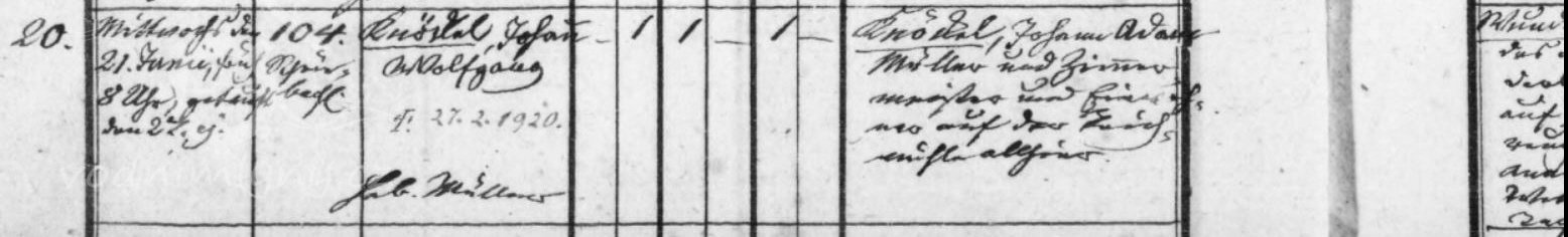 Hans Adam *1710, slabý člověk, který se nestál mlynářem, ale krejčím. Dožil se jenom 18 let.
