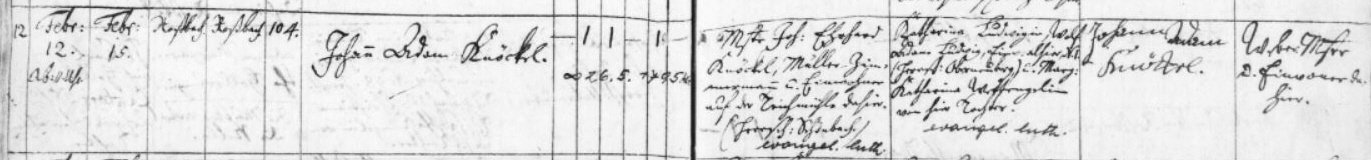 Johann Sebastian *1.3.1666,oženil se s Anna Katharina Wettengl, dcera mlynáře z Werneřova.Převzal mlýn, který byl jmenovanný Knöckel Mühle.Jejich potomci pak žílí v Plesné (Fleissen).