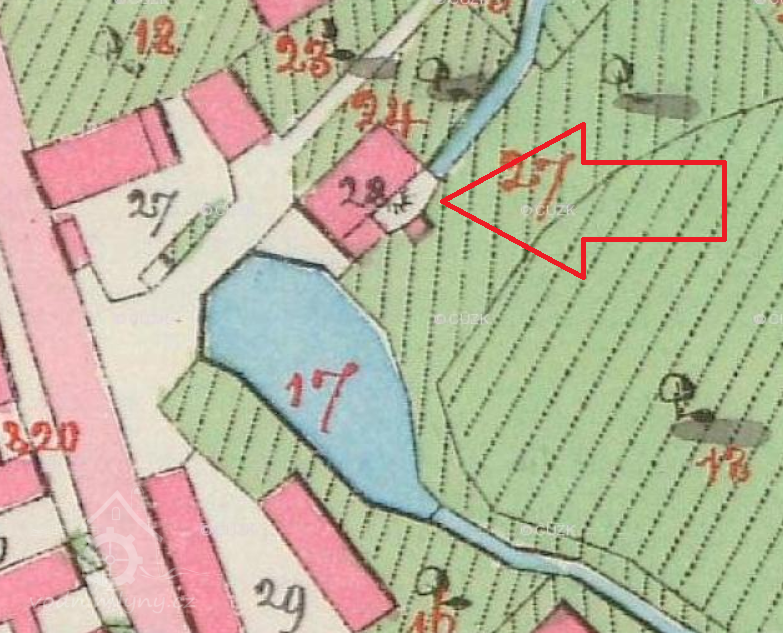 1852 vyvazen ze svazku panství, majitel František Benda, dle poznámky mlýn neměl vodní značku