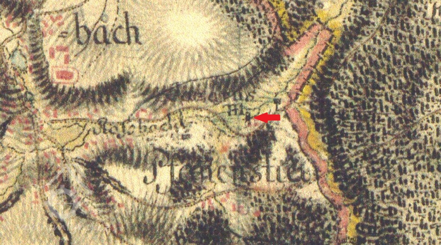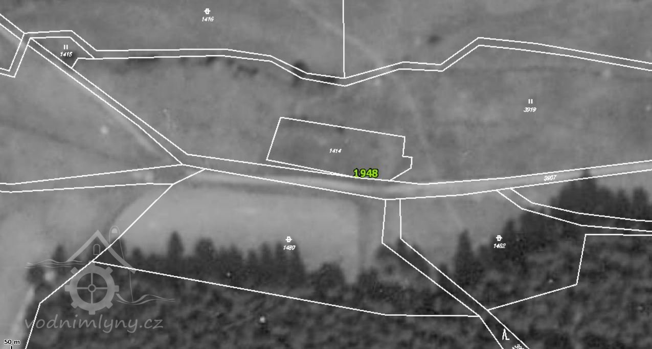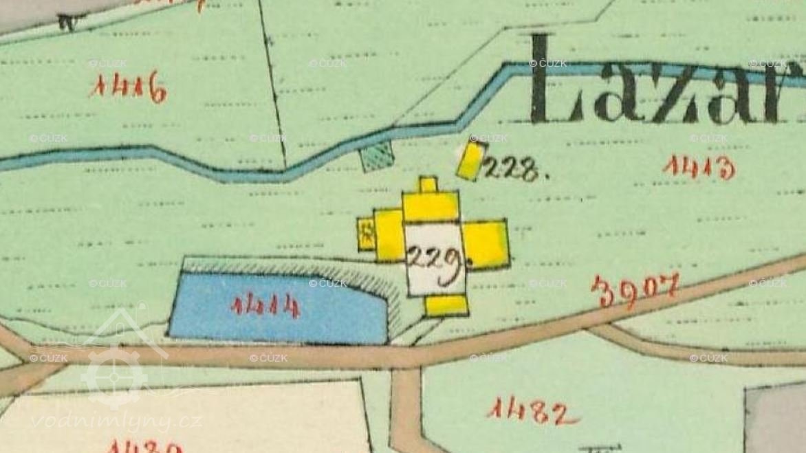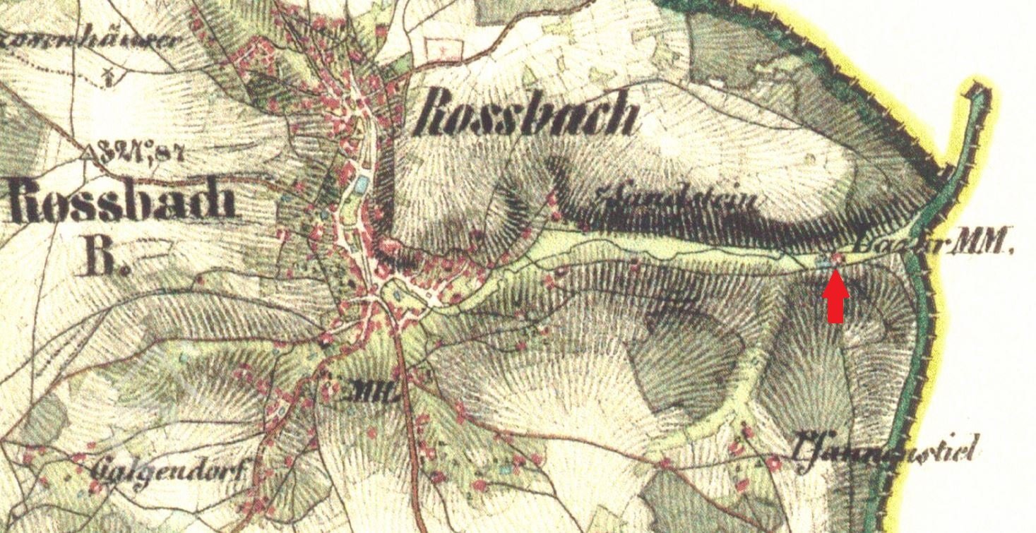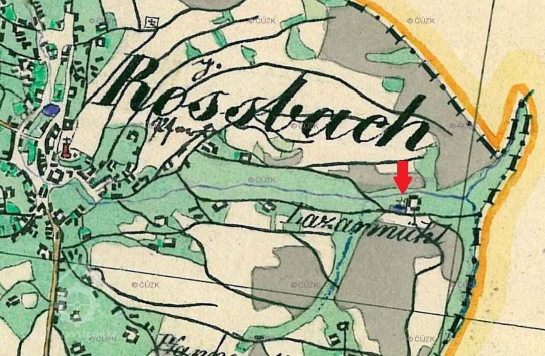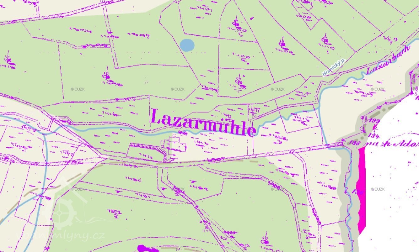 Mlecí mlýn na samotě poblíž obce Hranice na Hranickém potoce. 1903 vyhořel a nebyl znovu postaven.