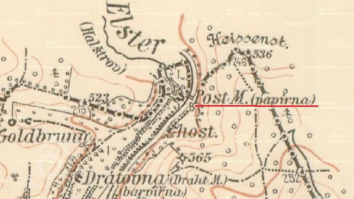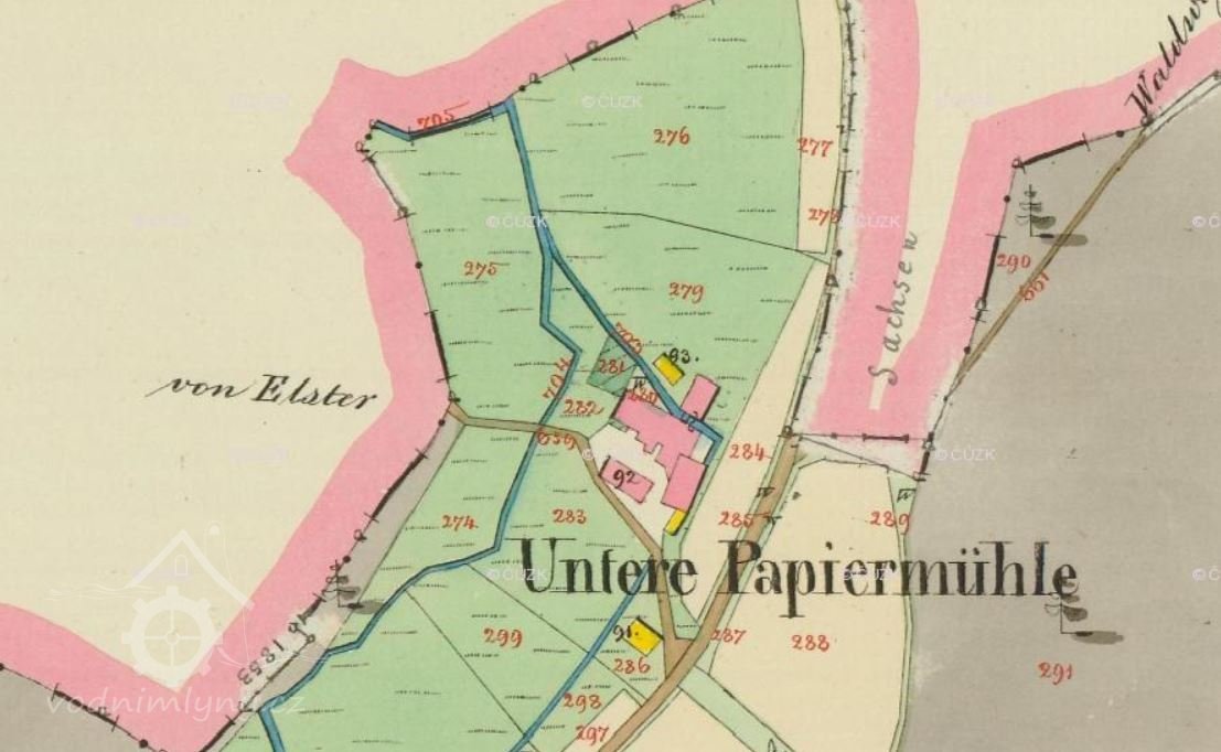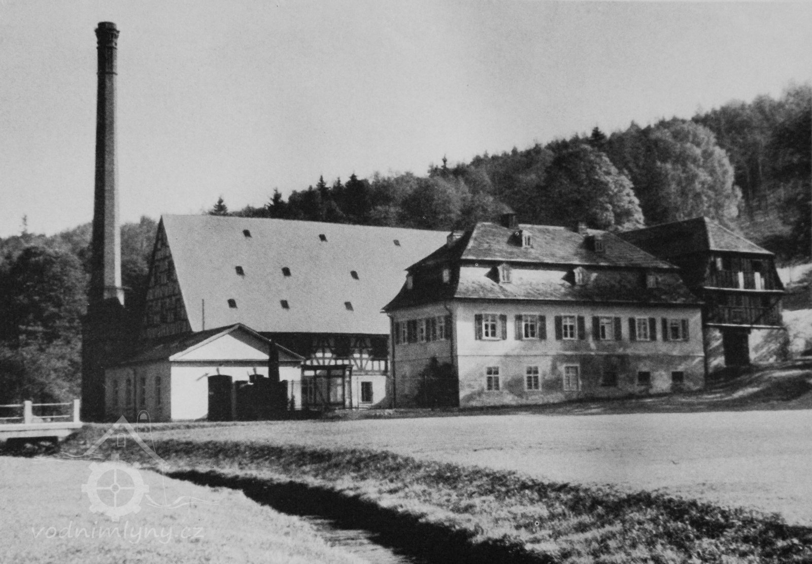 Vodní mlýn Wilhelm Lang č. 45 v Doubravě u Bílého Halštrova jménem "Postmühle".