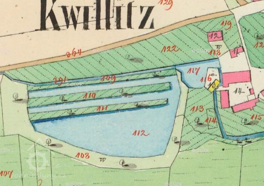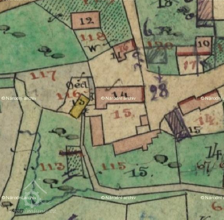 Popis1930: 1 kolo na svrchní vodu, hltnost 0,159 m3/s, spád 4,7 m, výkon 6,43 HP