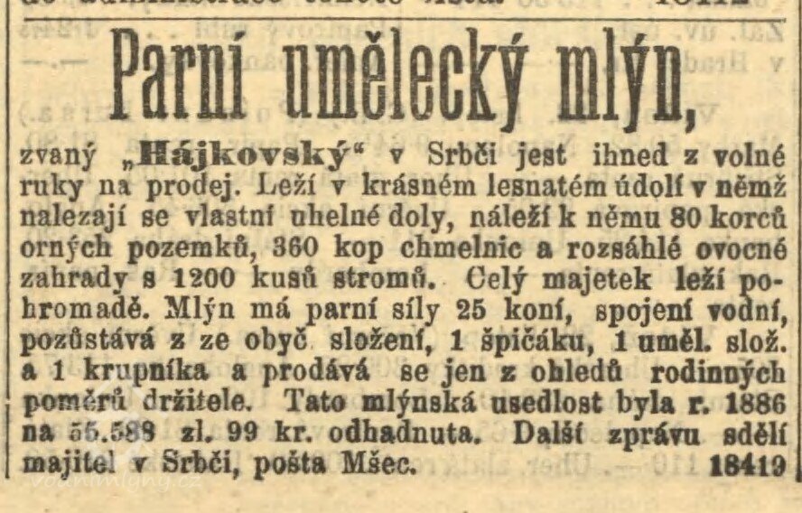 1886 nabízen k prodeji, odhadnut na 55.589 zl.
