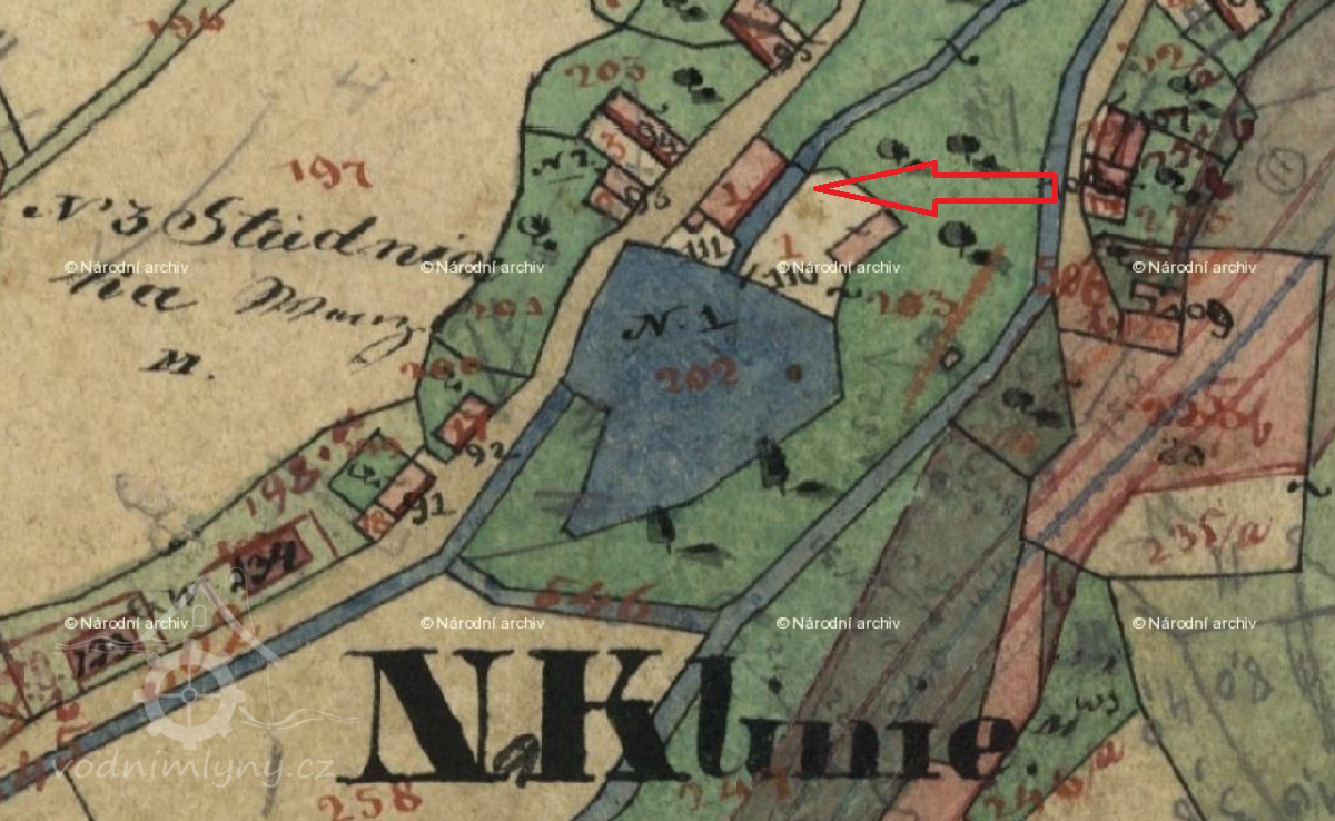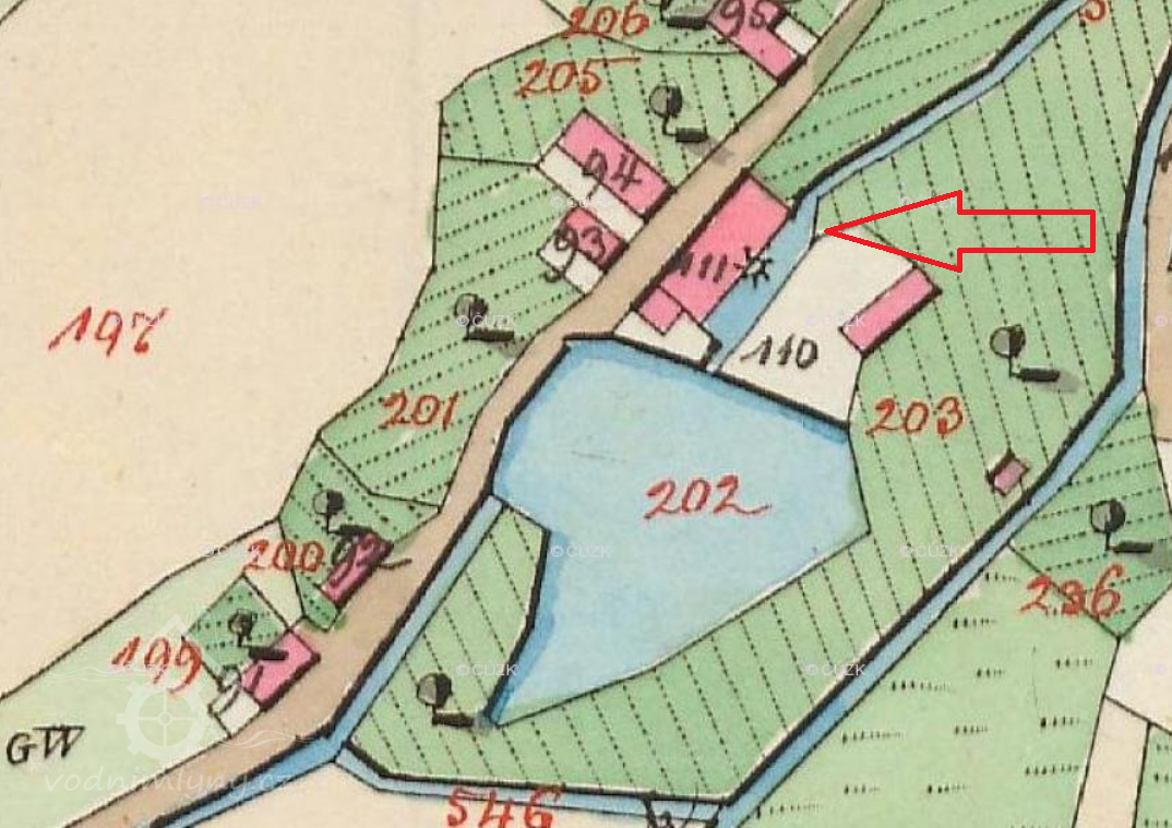 1930: mlýn: 1 kolo na svrchní vodu, hltnost 0,21 m3/s, spád 4,82 m, výkon 8,7 m