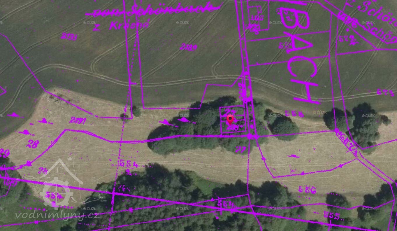 Ve vodní knize 1873 zapsán jako mlecí mlýn. Jeden mlecí kamen. Vodu dostává kolo ze dvou rybníků. Při velikém suchu je nedostatek vody a mlýn nemele.