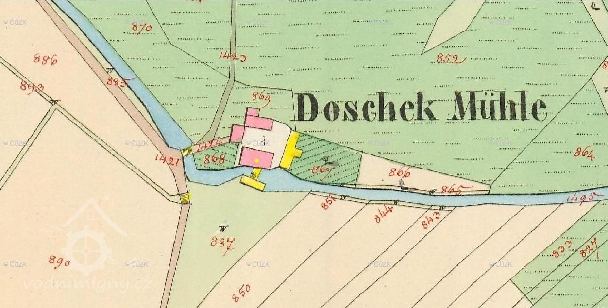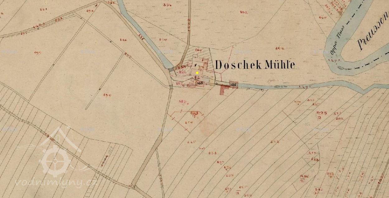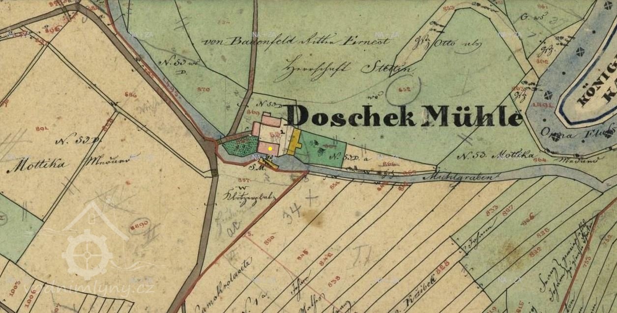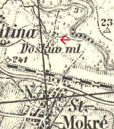 Letha 1709 dne Z February s powolenim wysocze urozeneho pana pana Joannesa Františka swobodneho pana z Boku a Burkwitz, diedicžneho pana na hradie Stetynie, Mokrolasczych, Nowosedliczych a Trubkach etc. odprodal Matiej Halfar mlynarz mlyn ze dwojym zlozenim pod Mokrolasczy leziczy w tomž panstwi gruntie ze wšym tym przyslušenstwym jak on sam užiwal, Šymonowi Klymanowi za sumu 150 Thl. hotowych peniez pocžtu oppawskeho, jeden Thl. po 36