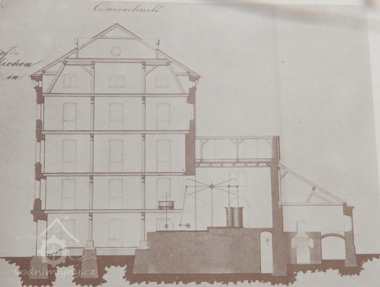 Mlýn částečně závislý na vodě z Chrudimky. Plán z roku 1855 dokládá budovu o čtyřech podlažích, ve kterých mělo být umístěno zařízení velkého uměleckého mlýna. K úplnému vybavení mlýna však nedošlo a mlelo se pouze na obyčejných složeních.