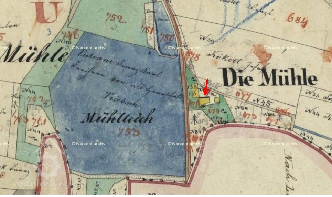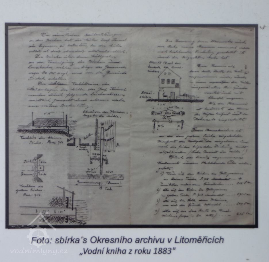 PopisV roce 1930 měl mlýn 1 kolo na vrchní vodu, hltnost 0,05 m3/s, spád 4,6 m. výkon 2 HP.