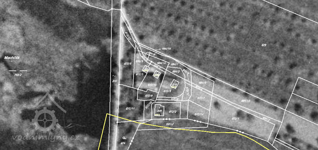 1951 - majitelem mlýna František Machek, mlýn byl v provozu ještě v r. 1951. Po tomto datu zanikl.