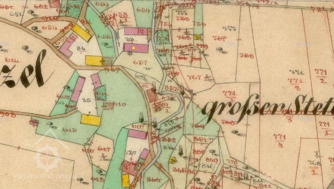 1930 - majitelem mlýna byl Aug. Heller, potok se nazýval Třebušínský.