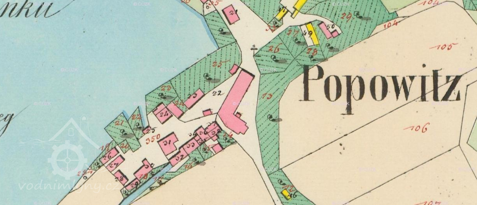 1651 Soupis poddaných podle víry - Popovský mlejn: mlynář Václav Kalina (50 let), žena Dorota (40), oba poddaní, synové Jan (26), svobodný a Jakub (25), poddaný, dcera Lidmila (18), poddaná, pacholek Jakub (26), tovaryš Václav (20), oba svobodní, všichni katolíci