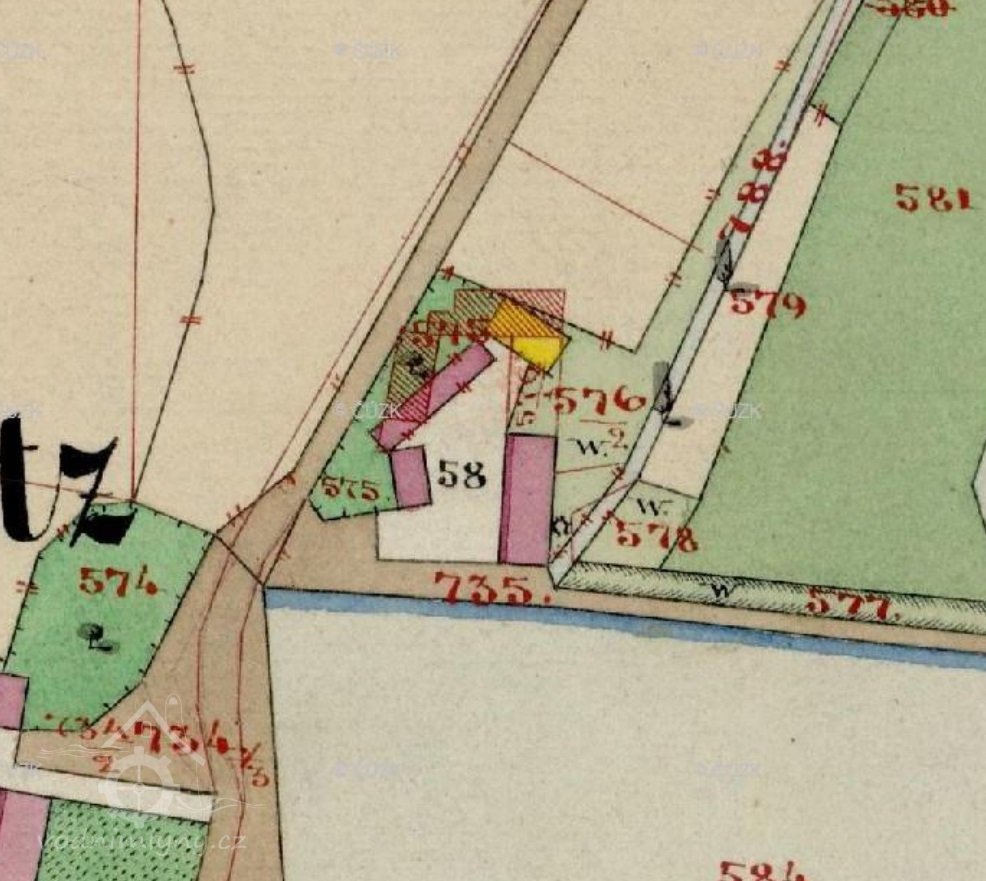 Katastrální mapa evidenční, výřez, 1927, © ags.cuzk.cz/archiv