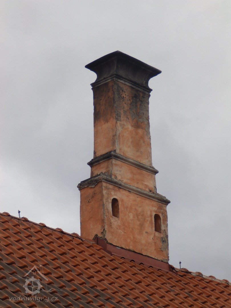 Detail zdobného komína na hospodářské budově, 2017, © Doxa, (Prvky na obrázku: komín)