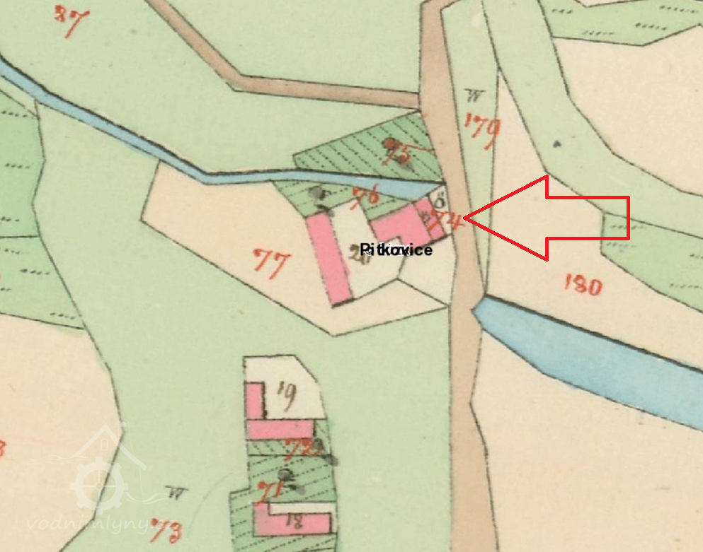 1618 - mlýn o 2 moučných kolech a 2 palečních kolech uvedený v inventáři statků Albrechta Jana Smiřického - "We mleynie Pitkowskym"