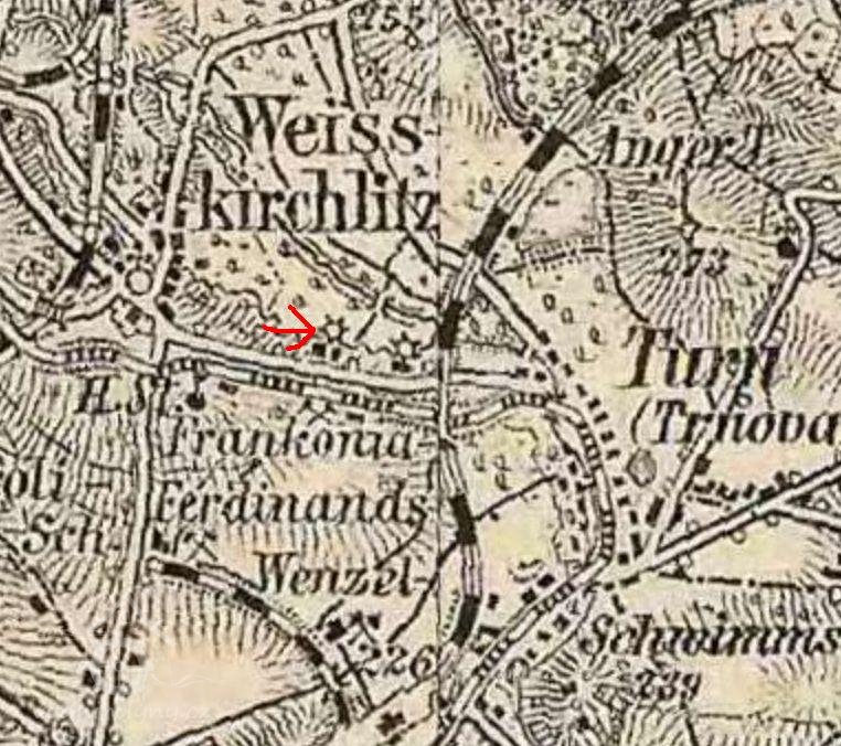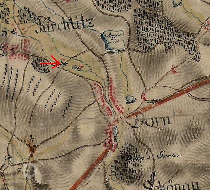 Na indikační skice v r. 1842 byl mlýn zděný o dvou kolech na náhonu z potoka Bystřice /dříve Flossbach/.