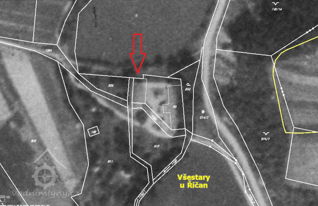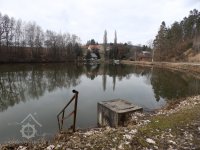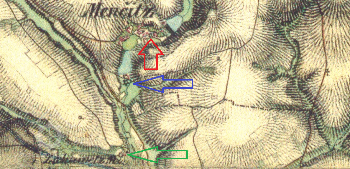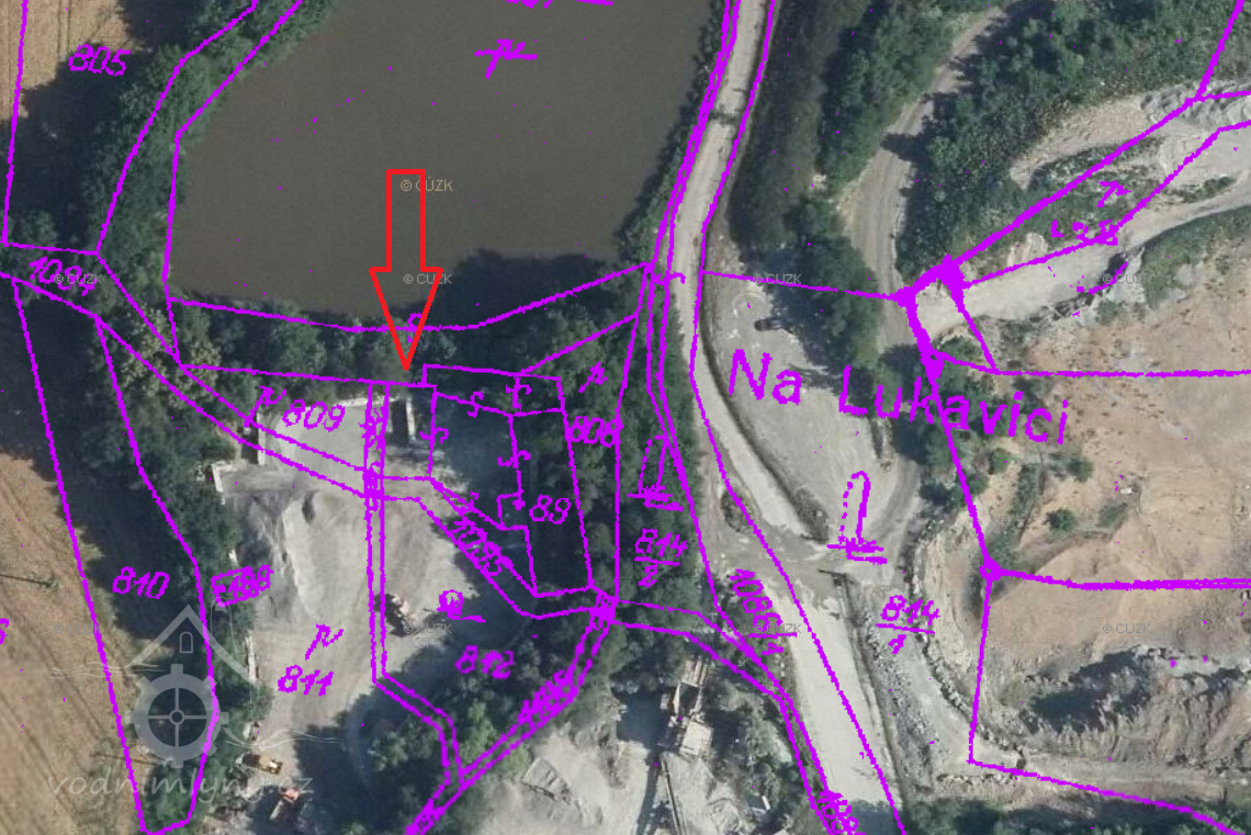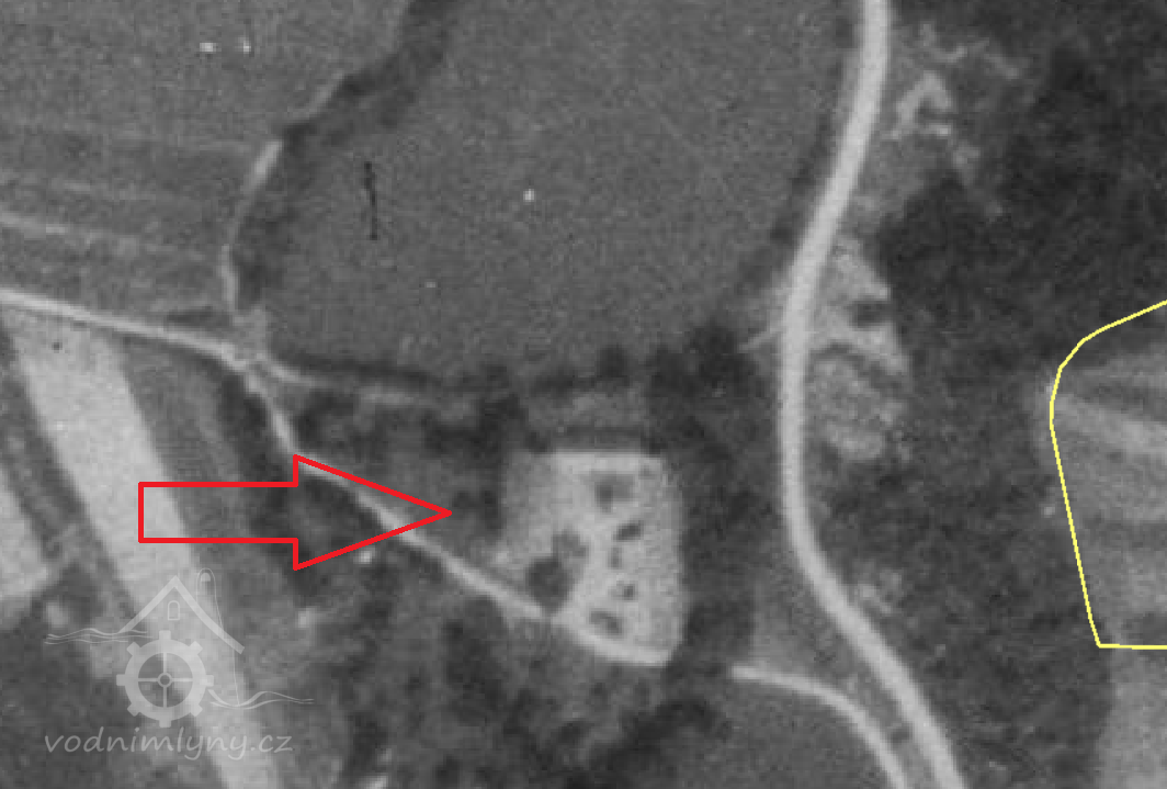 Prostřední mlýn v Menčicích, který bohužel musel ustoupit rozšiřování lomu. Jediným pozůstatkem mlýna tak zůstal rybník.