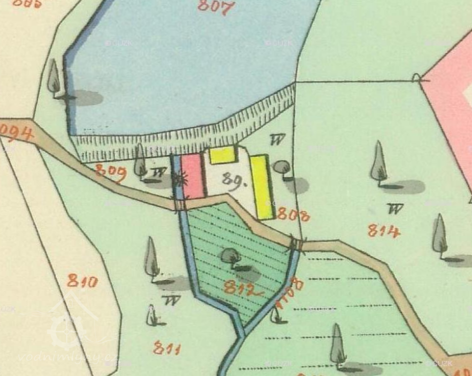 Popis1930: 1 kolo na svrchní vodu, hltnost 0,13 m3/s, spád 5,4 m, výkon 6 HP