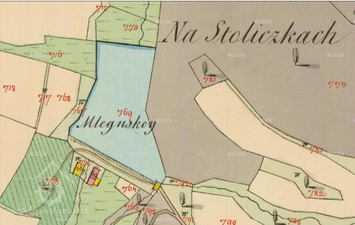 Velký rybník nad mlýnem vypuštěn a zrušen, dochována jen malá rezervní nádržka.
