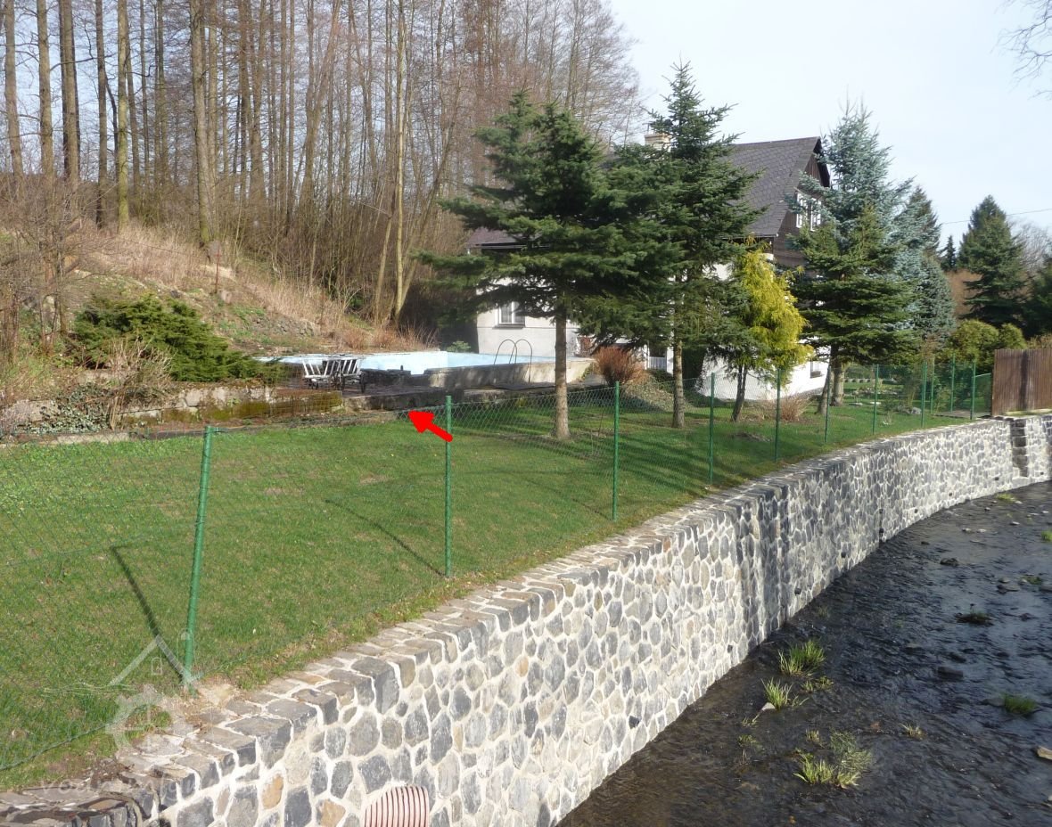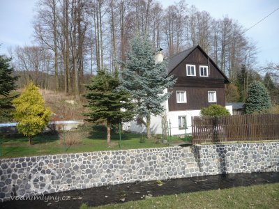 V zahradě mlýna je patrný zakrytý náhon, nad mlýnem mal rybníček - akumulační nádržka.