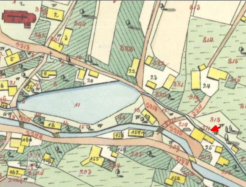 V roce 1930 byla ve mlýně pila, majitel Štěpán Stahr, potok se nazýval Volfartický.