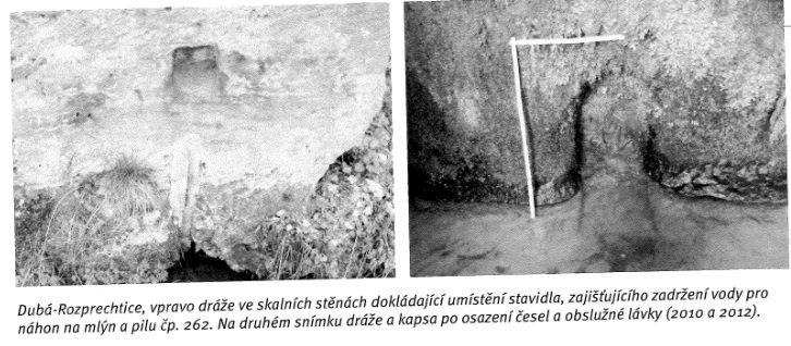 Dochovaly se tesané náhony a tunely ve skalách pod Rozprechtickým rybníkem s úctyhodným datumem 1528, přívodní trasa vedla obloukem, ve svém vrcholu přetínajícím dnešní silnici (jak ukazuje historická mapa).